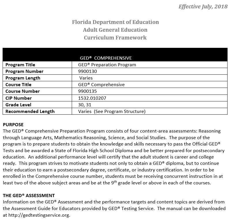 Additional info can be found at http://www.fldoe.org/core/fileparse.php/7522/urlt/GED-Comprehensive2018.rtf